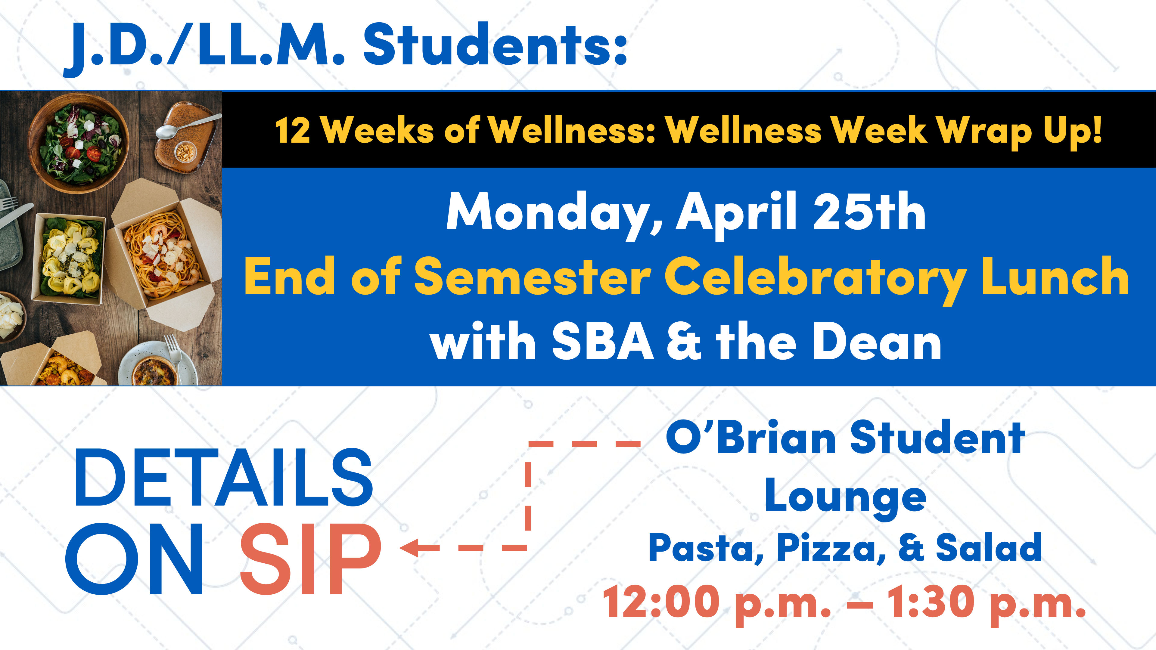 SBA will be hosting lunch on Monday, April 25 with the Dean to celebrate the end of the semester!