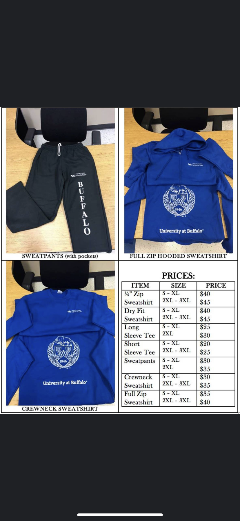 Students, faculty, and staff – get your UB law spirit on!! The Student Bar Association will be hosting a law school apparel sale! We will be selling exclusive UB Law apparel during Wellness Week.