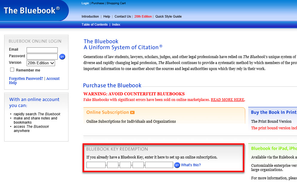 You should have received an email from me last Friday, March 20th with a unique access code for online access to the Bluebook. You can use this code to create an account here: https://www.legalbluebook.com/Public/Login.aspx