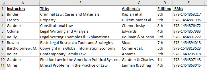A list of professors and corresponding Wolters-Kluwer coursebooks can be found below.