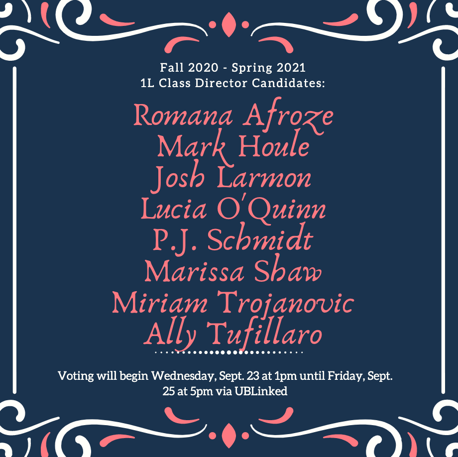 ATTENTION 1Ls! 1L Class Director elections are here! Click the link to make your voice heard: https://buffalo.campuslabs.com/engage/s ... art/443823