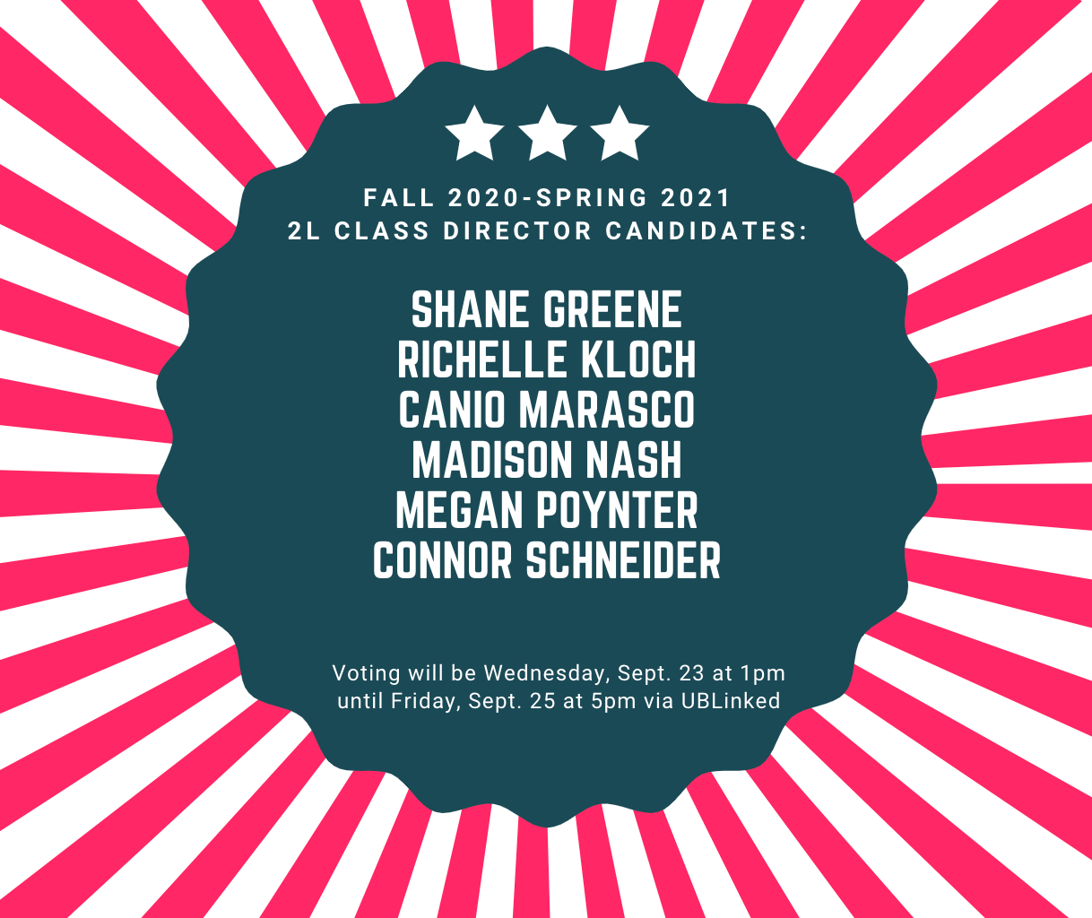 ATTENTION 2Ls! SBA 2L Class Director elections are now open! Voting will go until 5 pm on Friday, Sept. 25th via UBLinked! You can also click this link to cast your vote! https://buffalo.campuslabs.com/engage/s ... art/443967