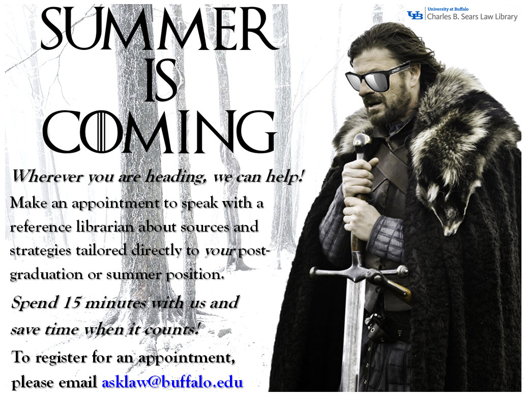 To register for an appointment, just email asklaw@buffalo.edu or call us at (716) 645-2047. [Please be sure to include your employer and practice area(s) of interest when you email or call, along with your availability and your preference for an in-person or remote appointment.] We are currently booking appointments through the end of the month, but if you would like to set up a meeting after May 31st (or after you finish taking the bar exam), just email me at briandet@buffalo.edu and I will find a time to speak with you.