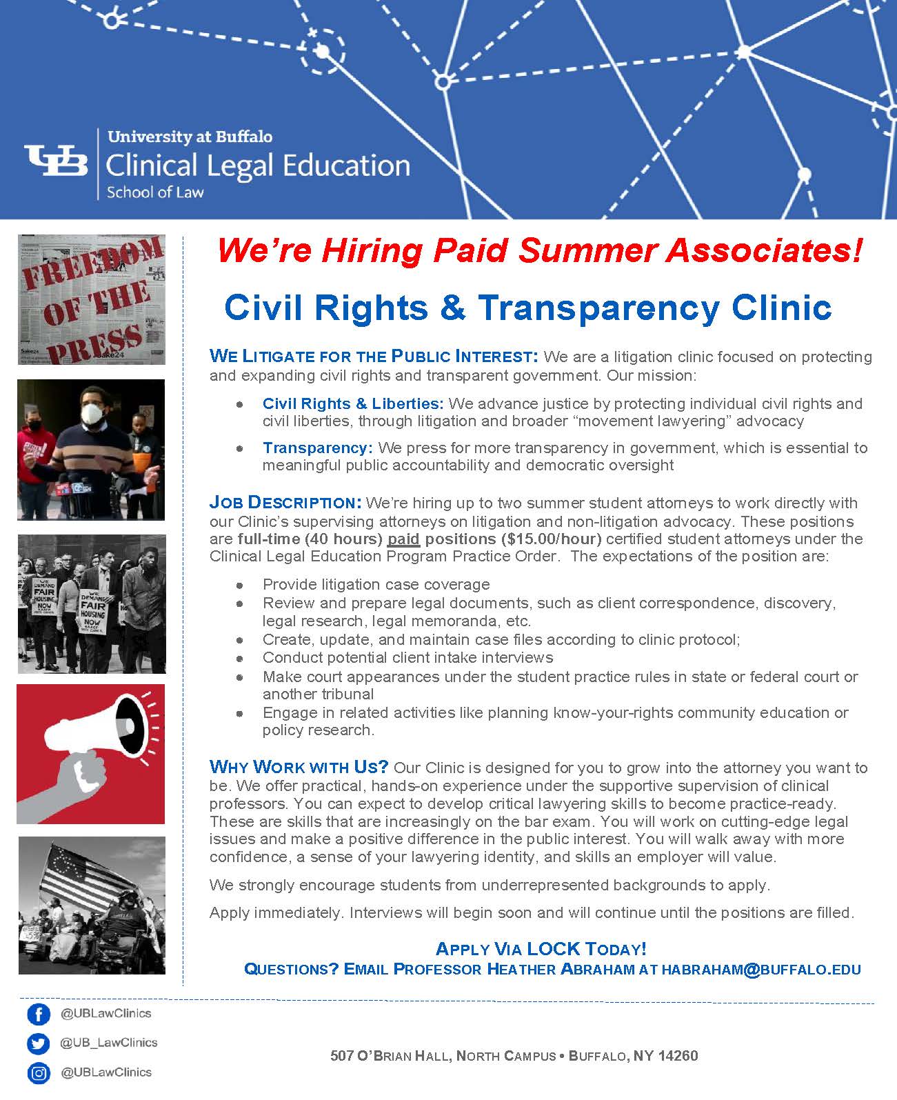 Apply immediately at https://law-buffalo.12twenty.com/job-po ... 6701508758. Interviews will begin soon and will continue until the positions are filled.