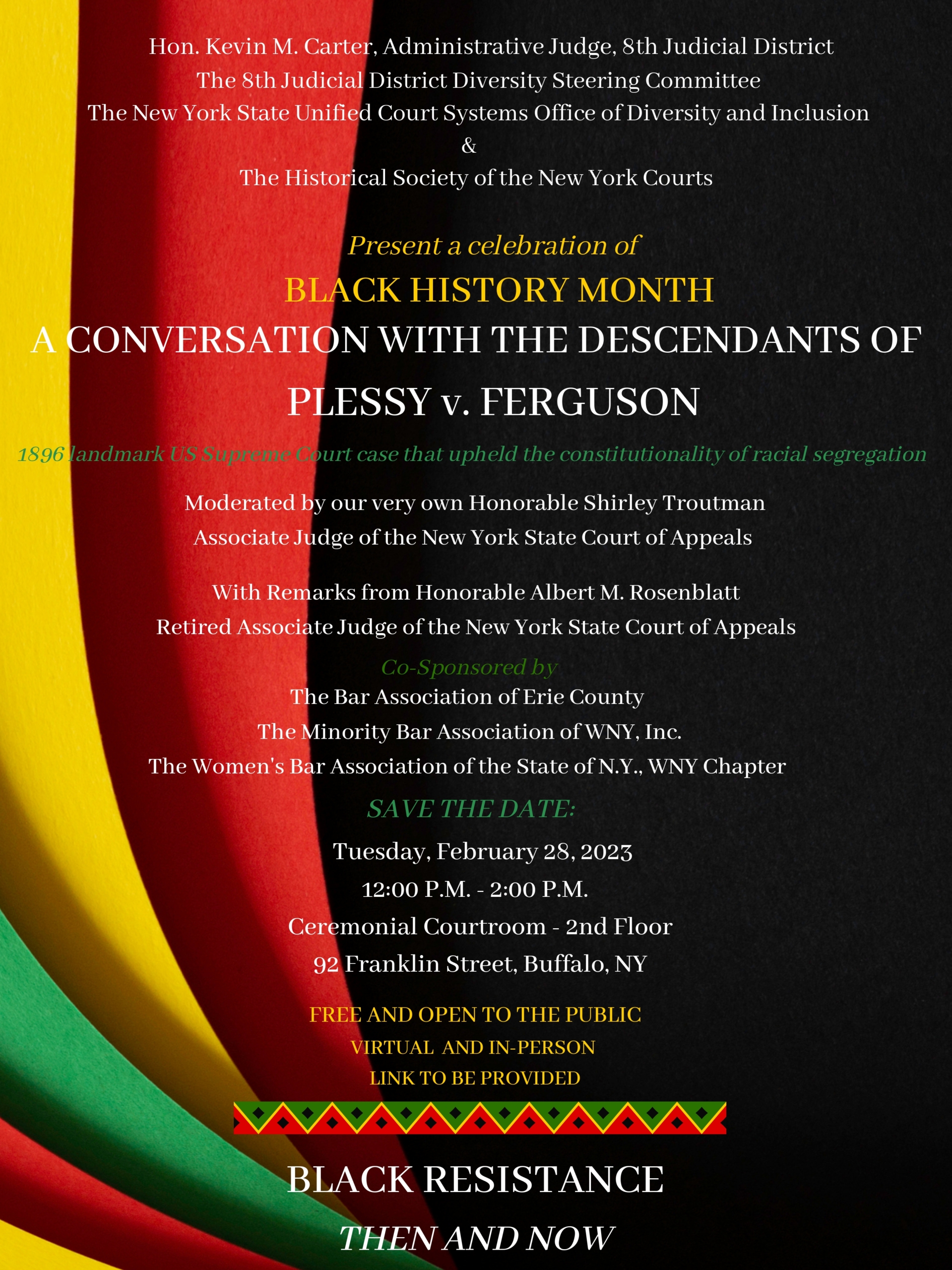 Organized by The Eighth Judicial District Diversity Steering Committee, The New York State Unified Court System Office of Diversity and Inclusion, The Historical Society of the New York Courts.