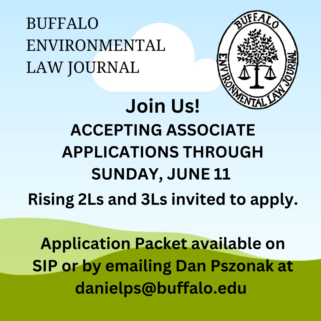 The Buffalo Environmental Law Journal (BELJ) is now accepting applications for the 2023-2024 associate class!