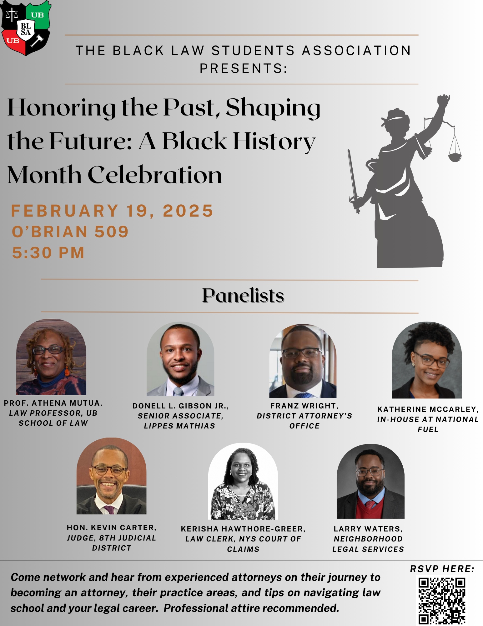 Join BLSA on Wednesday, February 19 between 5:30 - 7:30 pm for their networking and panel event, a great opportunity to meet and hear from black voices in the law community.