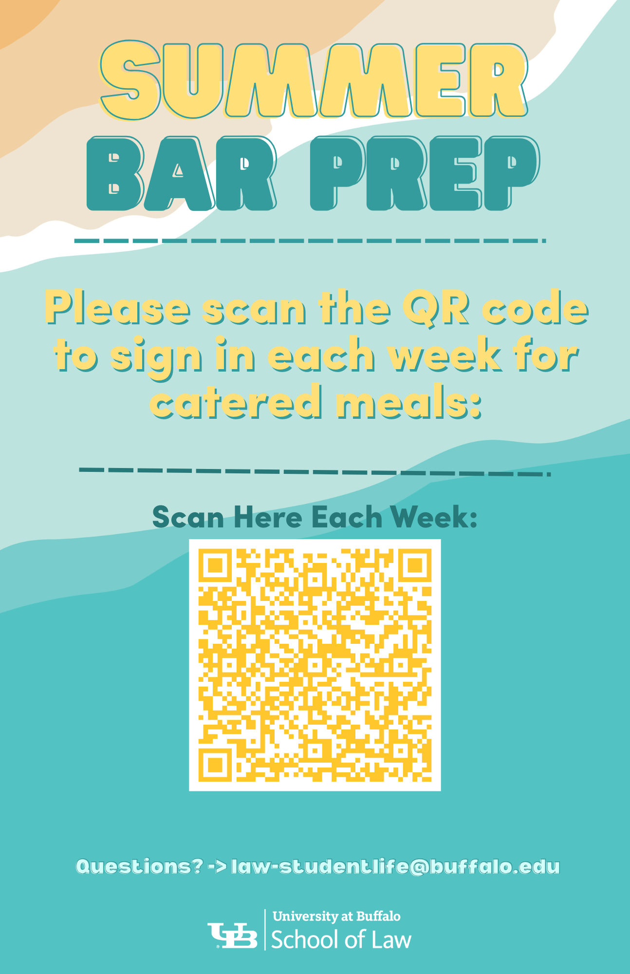 OSA will be providing fruits and snacks for you weekly in the 5th Floor Student Lounge of the Law Library. Additionally, OSA will be catering a lunch once per week (primarily on a Tuesday or Thursday) with the first being on Thursday, May 29th at 12 p.m. Please sign in each week by using the QR code attached or here, which will also be located within the law library.