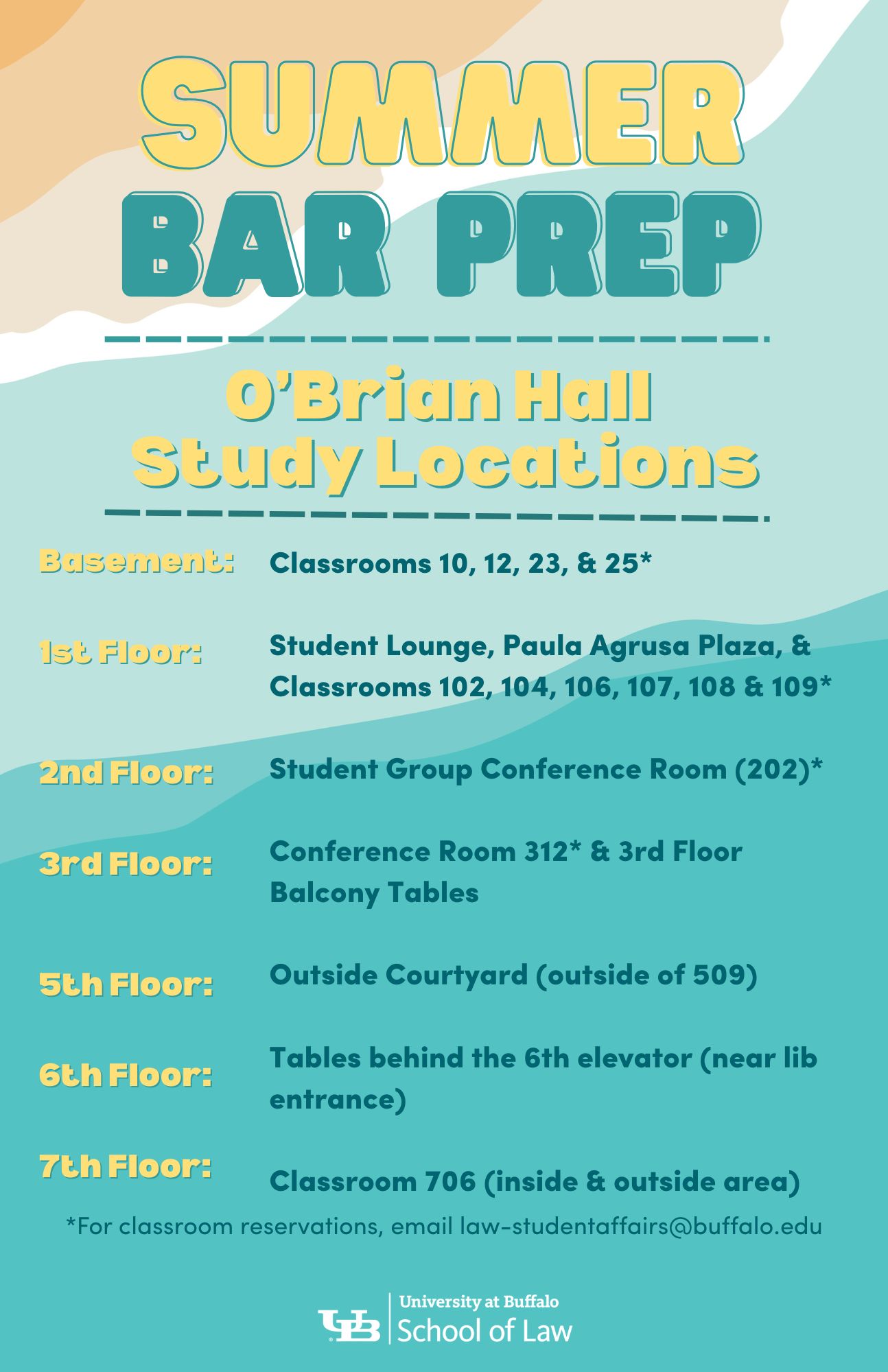 Please also see attached study locations flyer for ideas for where to study in addition to the law library this summer