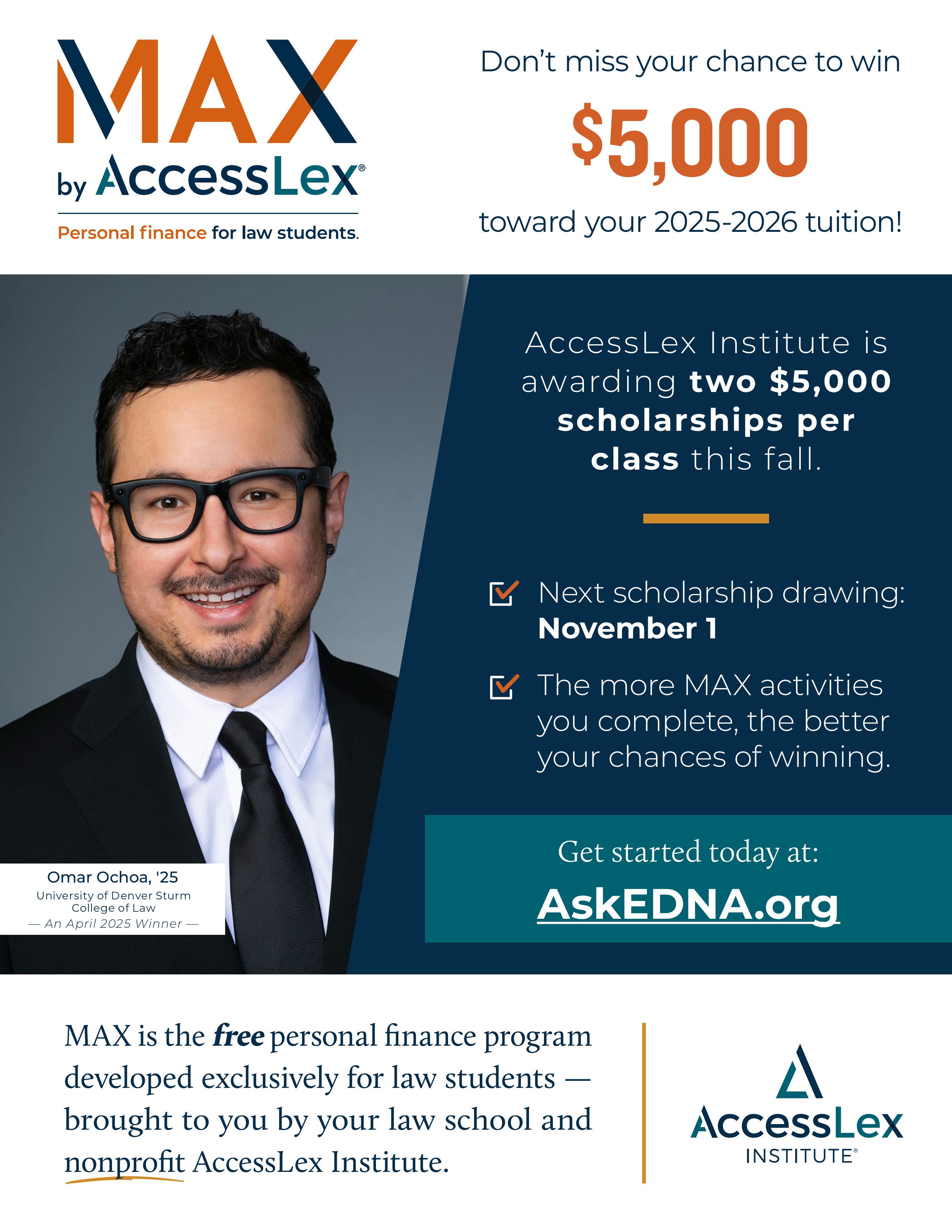 Are you ready to scare away uncertainty and protect your financial future? Join us for the Foundations of Insurance four-part webinar series in MAX by AccessLex® this month! Unravel essential insurance basics, learn how to shield yourself from risks, and build a solid strategy for lifelong peace of mind with health, life, property, and liability insurance. Don’t forget – each session you attend earns you another entry into the MAX annual scholarship drawings! The first drawing is right around the corner on November 1.