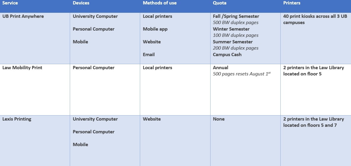 - Quota and costs: All UB students will receive the same University quota allotments: