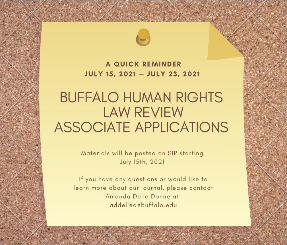 The Buffalo Human Rights Law Review is accepting associate applications between July 15 and July 23!