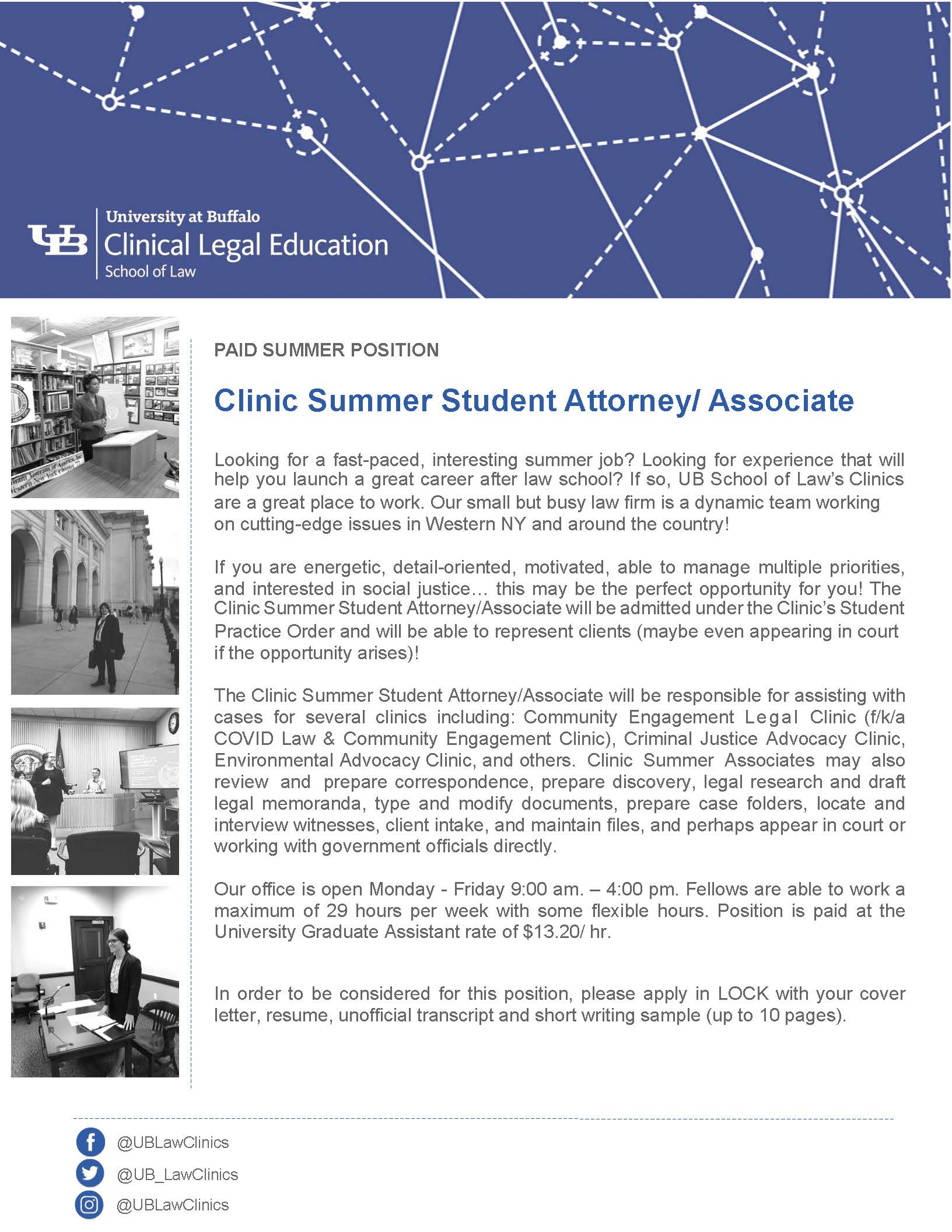 Paid Summer Position - UB Law Clinic Summer Student Attorney/ Associate