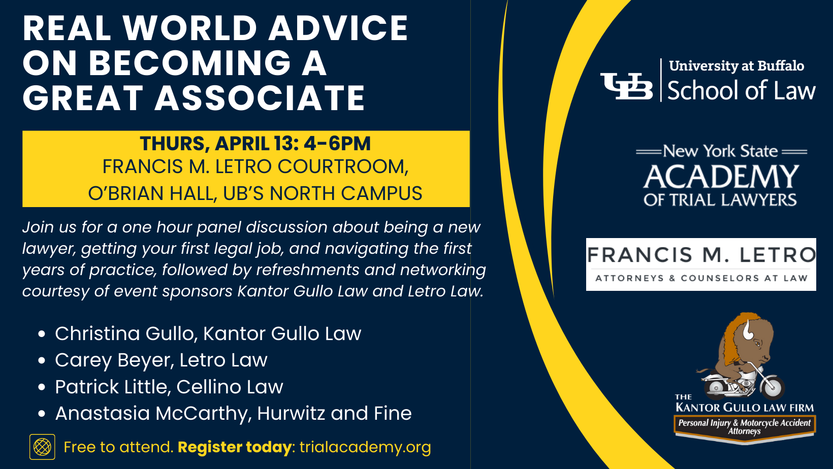 Free to attend. Register at: trialacademy.org
