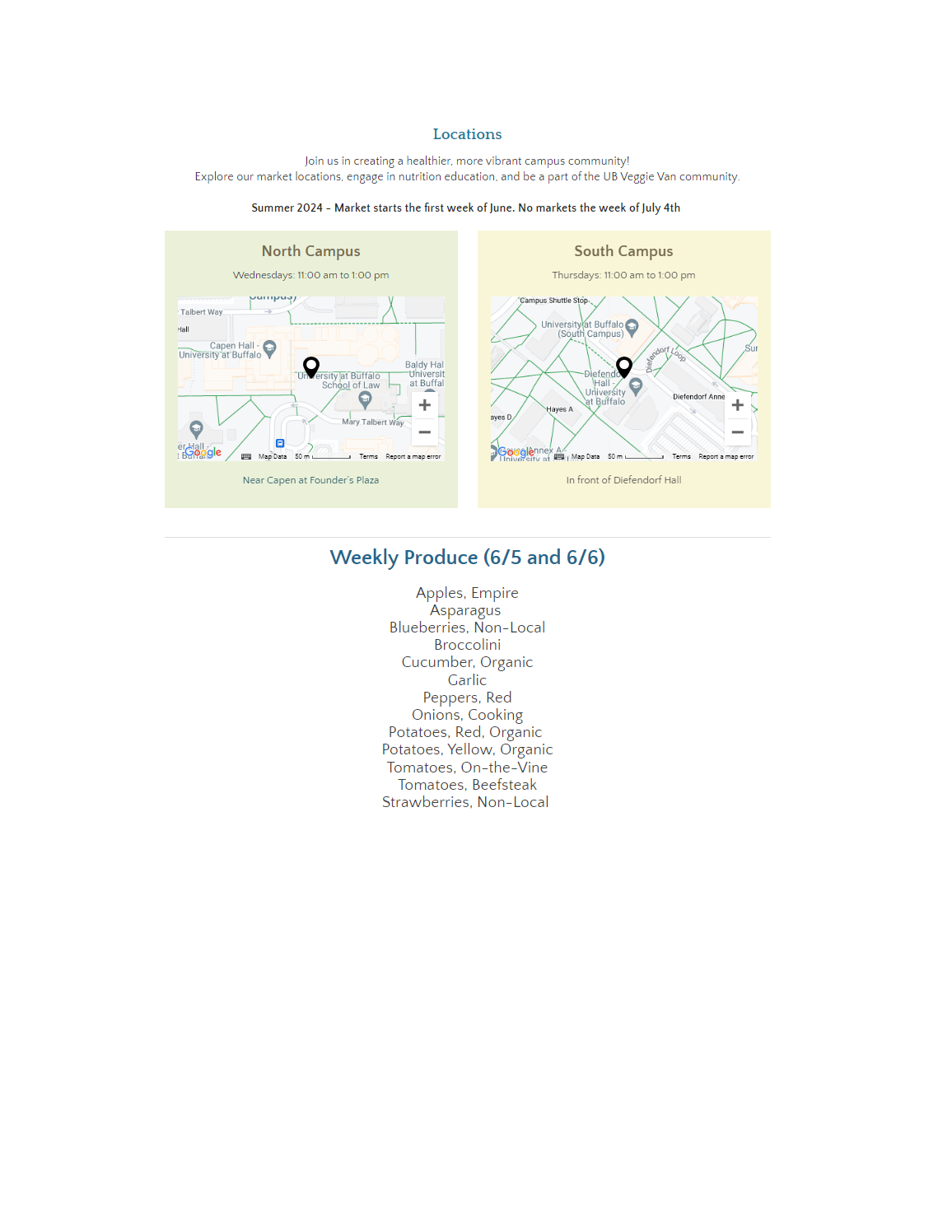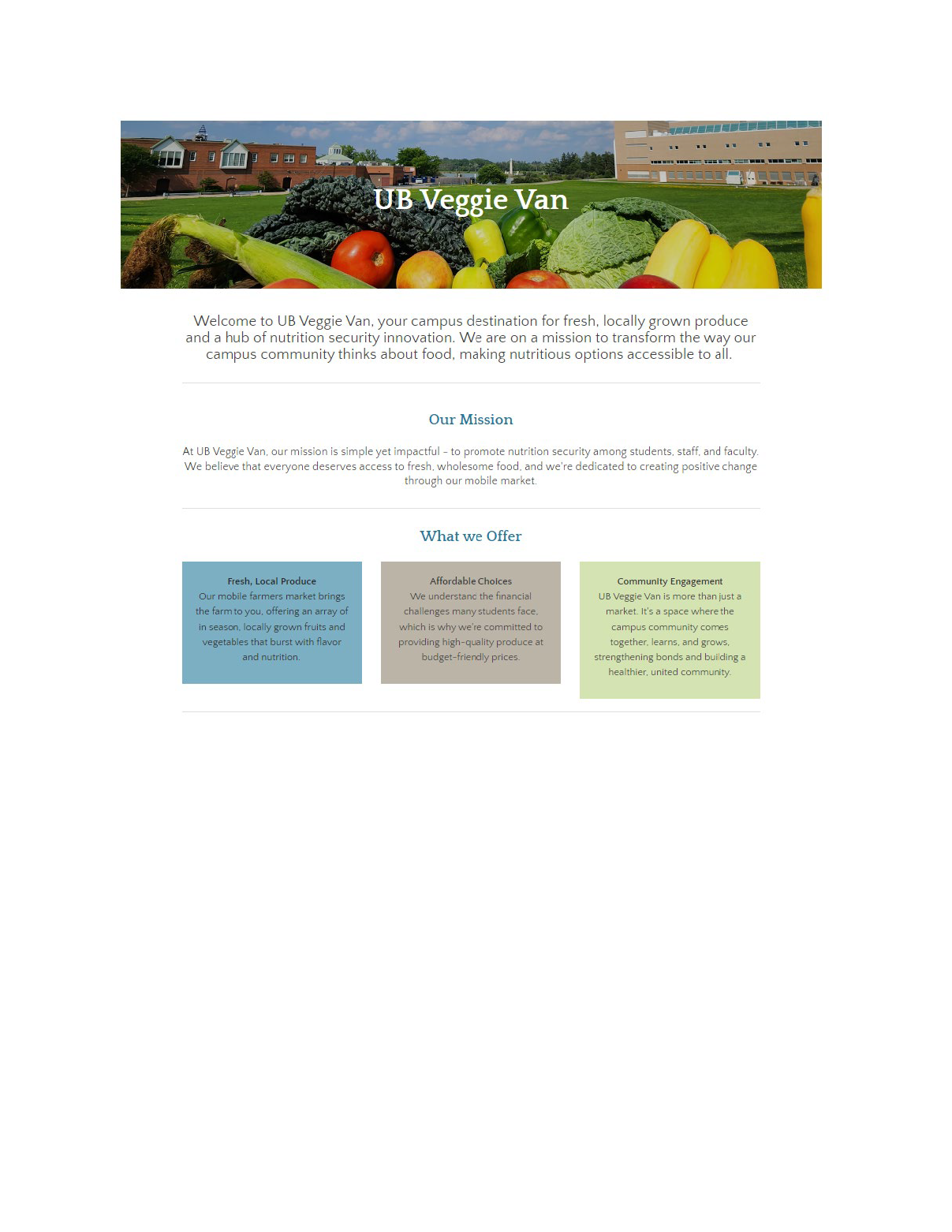 Join us in creating a healthier, more vibrant campus community! Explore our market locations, engage in nutrition education, and be a part of the UB Veggie Van community.