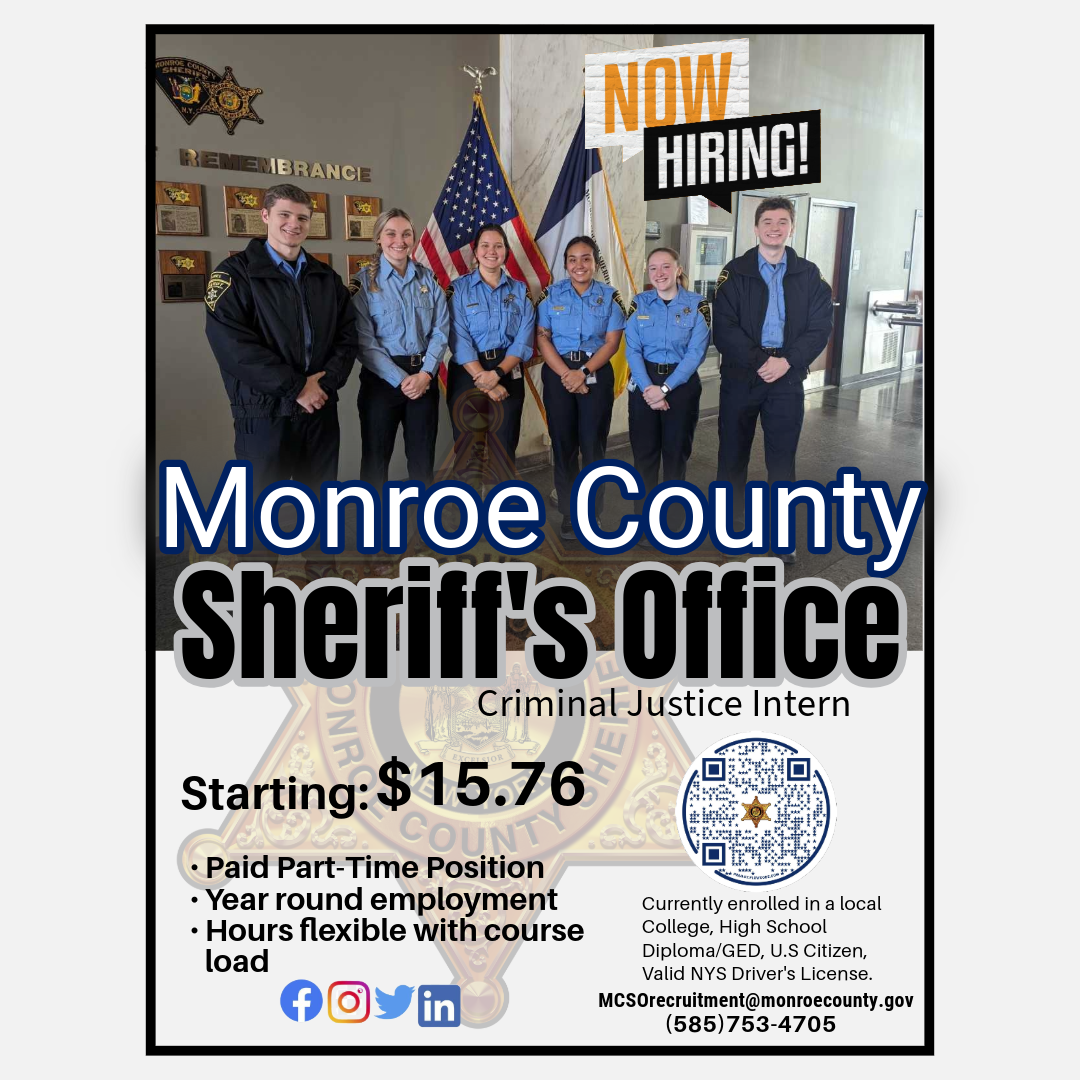 Monroe County Sheriff's Office has a Criminal Justice Intern starting at $15.76 per hour. It is a year round position and hours are flexible with work.