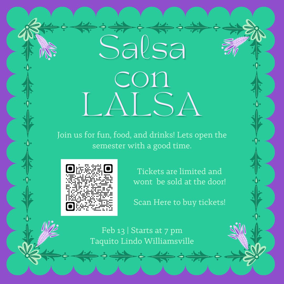 On Thursday, February 13 between 7 - 8 pm, join LALSA for some light food and drinks! We will be meeting at Taquito Lindo in Williamsville at 7 pm. Please purchase a ticket at the UB Ticket website.
