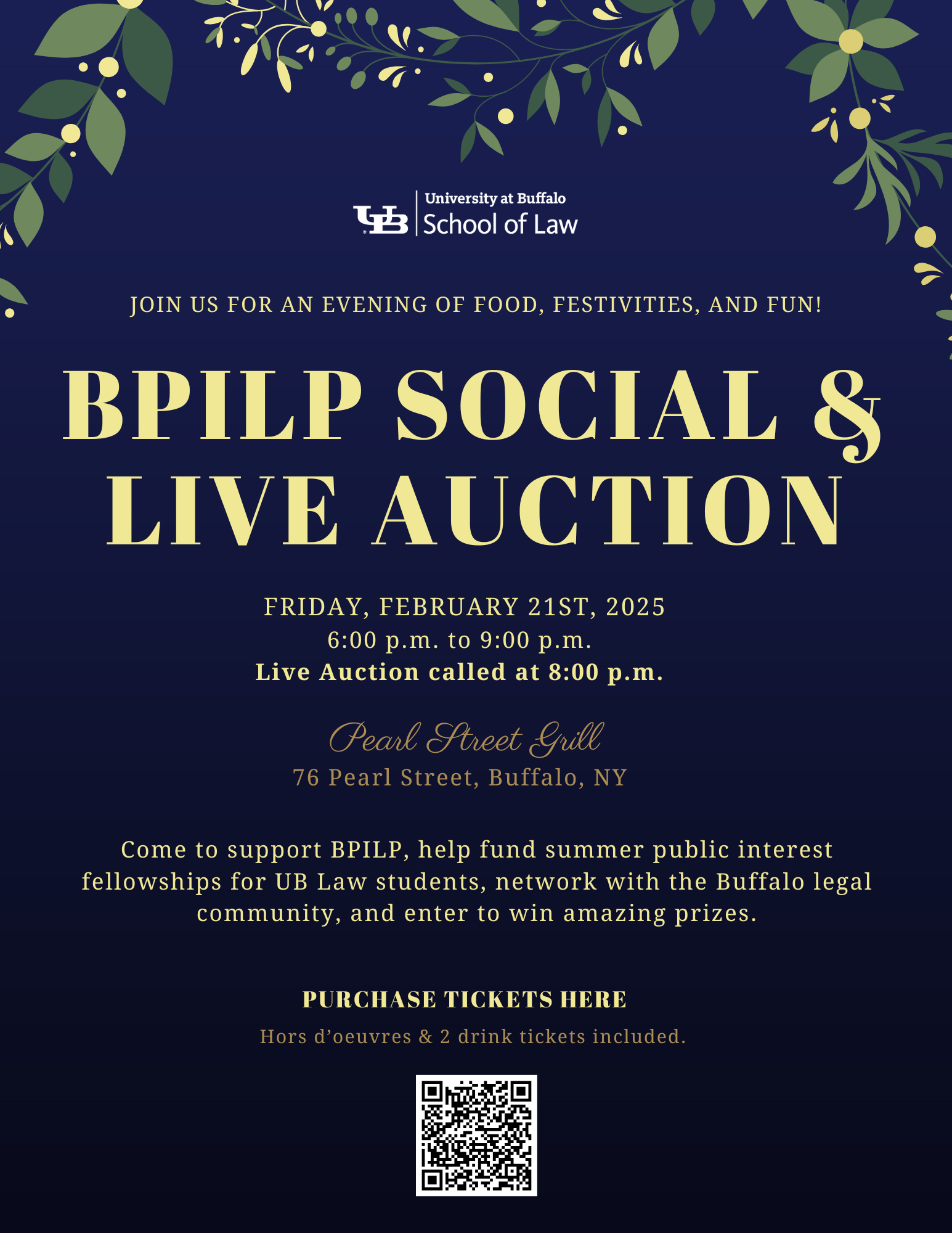 Come stop by the O'Brian Hall lobby for donuts and to learn about the BPILP Auction! The 2025 BPILP Social & Live Auction is on Friday, February 21 2025 from 6:00 p.m. - 9:00 p.m. at the Pearl Street Grill, Third Floor, 76 Pearl St, Buffalo, NY.