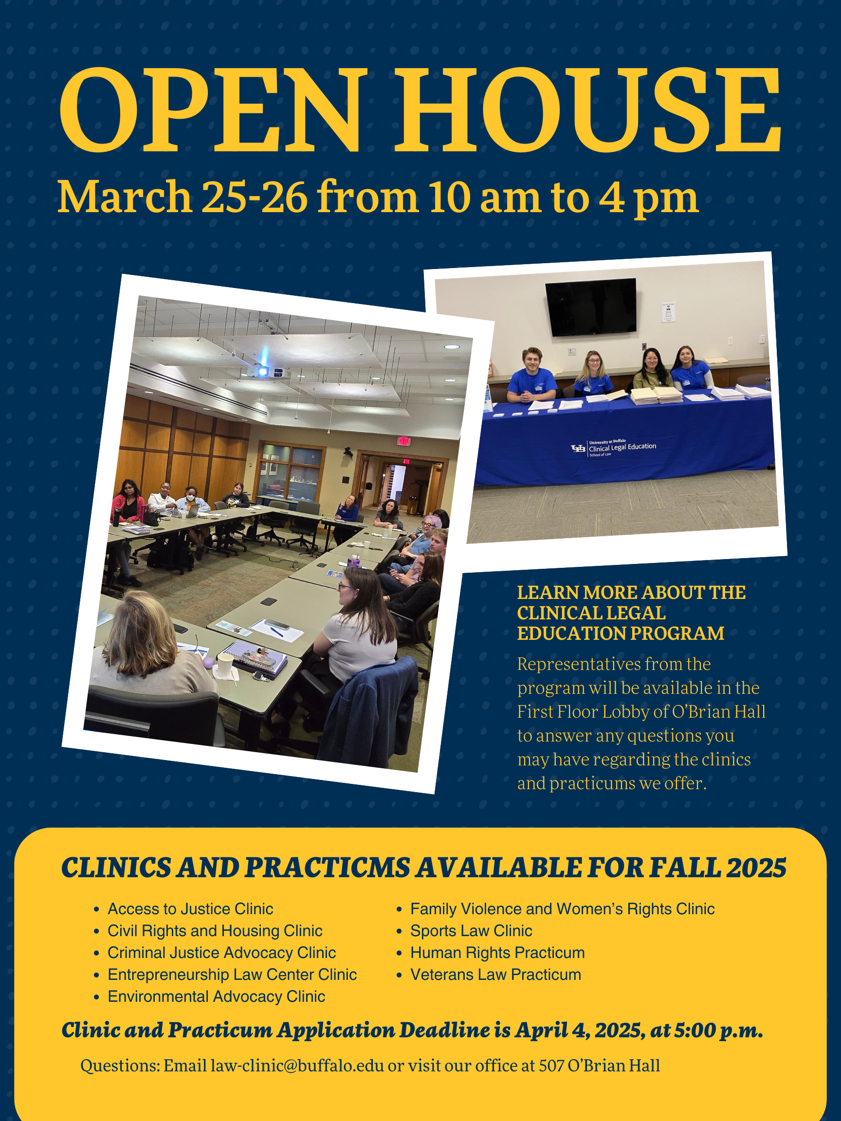 Questions? Email law-clinic@buffalo.edu or visit our office at 507 O'Brian Hall.