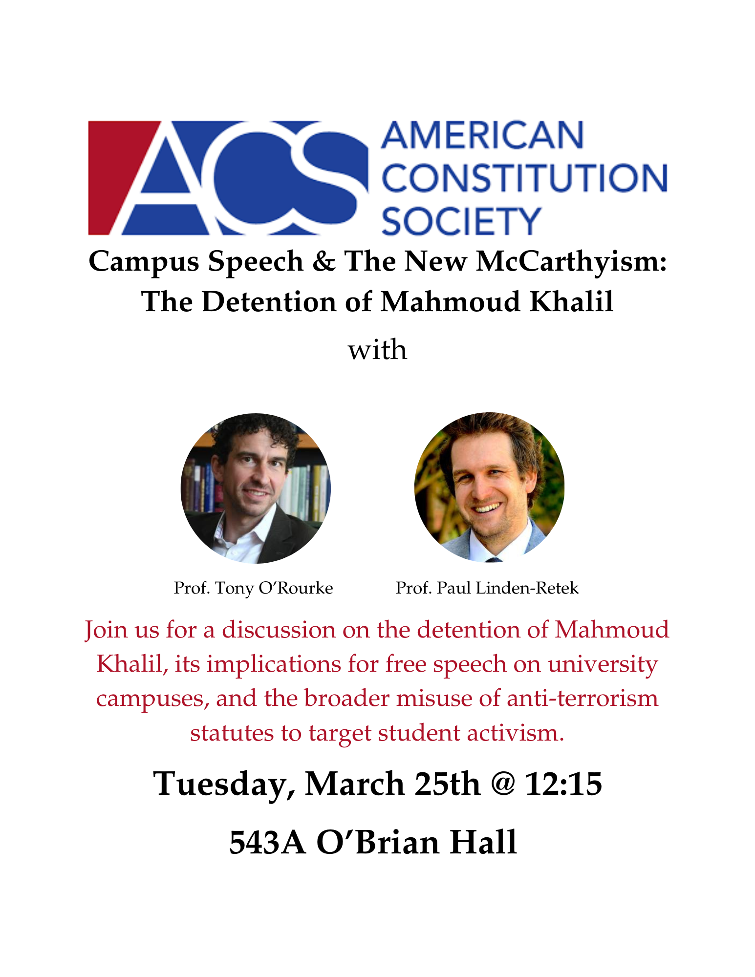 ACS: Campus Speech & The New McCarthyism: The Detention of Mahmoud Khalil