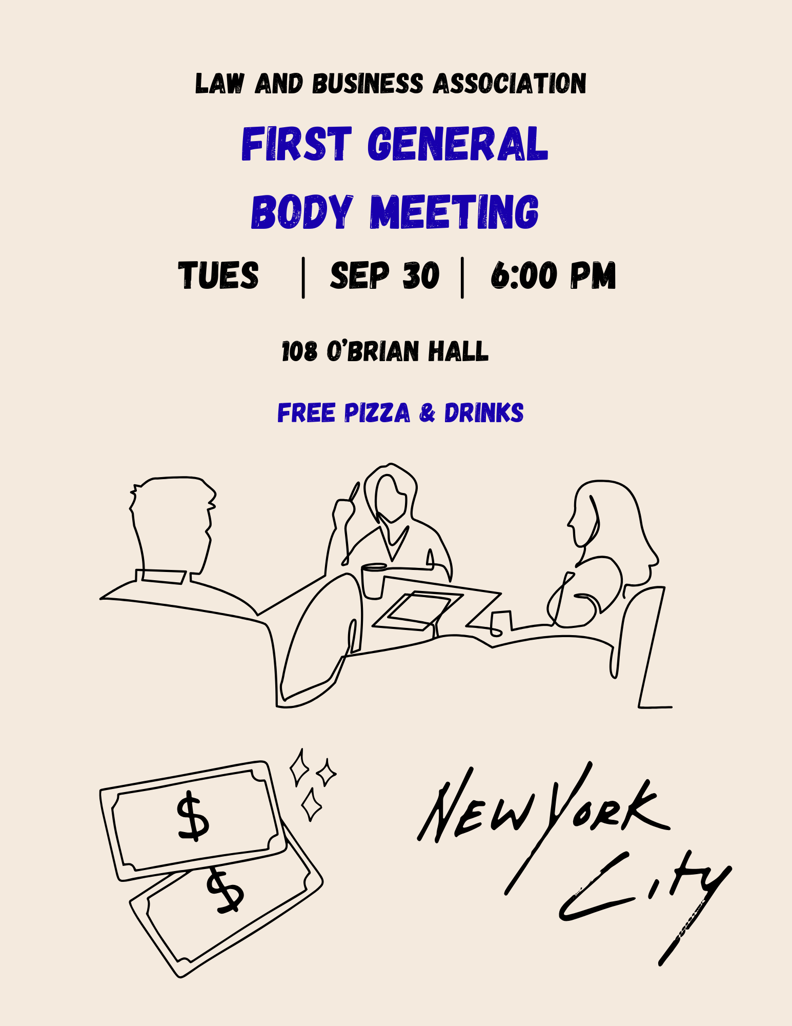 On Tuesday, September 30, between 6 pm and 7 pm in O'Brian 108, the LBA will hold its first General Body Meeting of the semester! They will introduce their organization, share upcoming opportunities, and talk about ways to get involved.